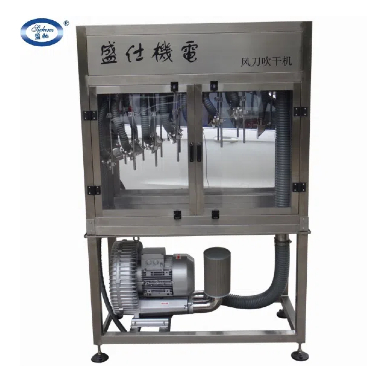 答:1、針對(duì)貼標(biāo)前的干燥要求進(jìn)行設(shè)計(jì),采用專(zhuān)利設(shè)計(jì)風(fēng)刀,把高速風(fēng)引致玻璃瓶表面,快速切除水份,以更低功率(高壓鼓風(fēng)機(jī)配合風(fēng)刀—···